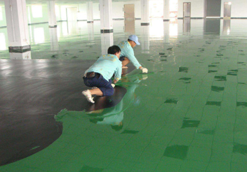 材料配比時(shí)按標(biāo)準(zhǔn)比例調(diào)配,按順時(shí)針和逆時(shí)針兩個方向把材料充分?jǐn)嚢杈鶆蚝�,靜放3分鐘消泡后再施工。采用滾涂方法在處理好的基礎(chǔ)地面滾涂一至兩道底漆材料,每道間隔8小時(shí),完成實(shí)干后再涂第二道。環(huán)氧底涂層主要是銜接作用,把基礎(chǔ)地面和環(huán)氧涂層粘合在一起,避免脫層。